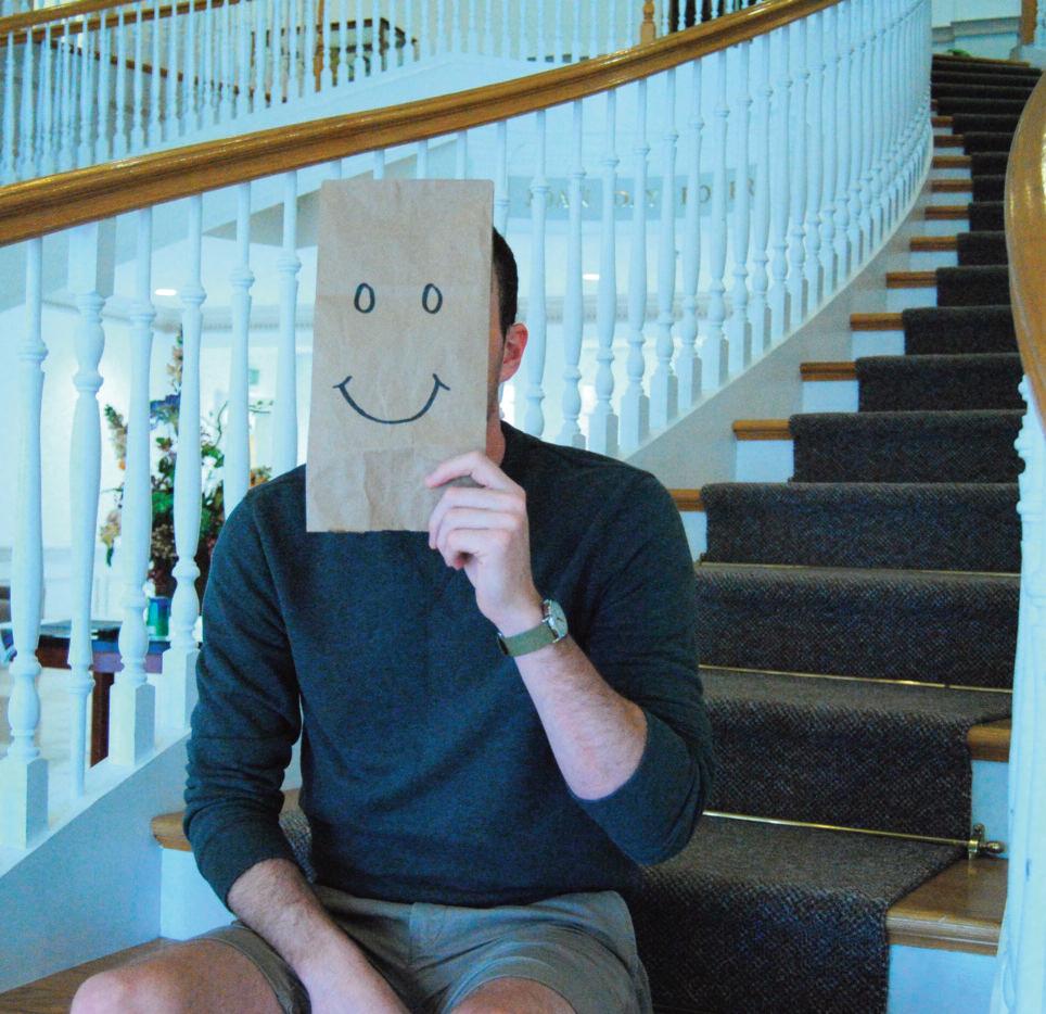 I learned quickly that getting this experiment to work the way I wanted it to would mean more than simply saying hi to each person I passed by on my way to class or to lunch; I’d have to completely change my approach. In the same way that painting racing stripes on a Kia doesn’t make it Nascar-worthy, teaching the group B, quiet, look-downat-the-pavement me to wave at a few people I’ve never met doesn’t make me outgoing. It makes me a faker Even these people that I’d never spoken to before could tell that.