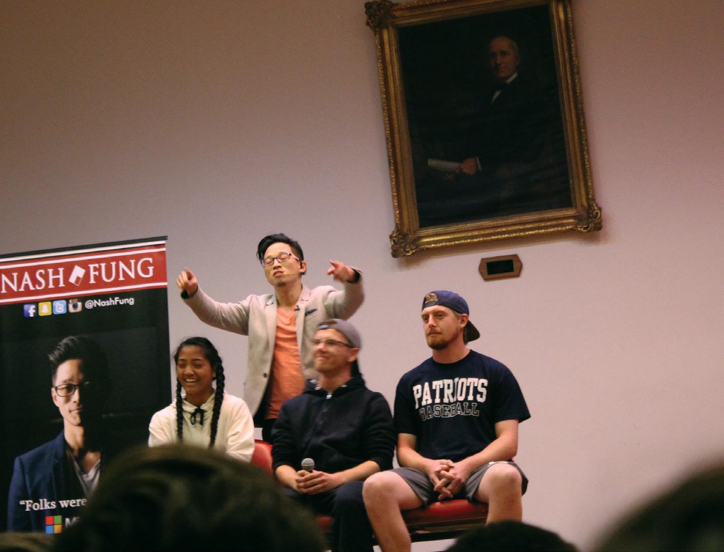 On Oct. 17 at 8 p.m. UC students gathered in Gatliff Chapel to watch magician Nash Fung perform. Fung has been featured on the CW network on âPenn and Teller: Fool Us.â Fung kicked off the show by having the audience take a photo of him. He later used the picture to prove that his shirt changed from black to pink on stage without anyone noticing. Fung asked one student on to the stage to pour a bottle of water into a pitcher. When he turned it upside down, the water stayed inside the bottle. Then Fung slid pens into the opening of the bottle to prove there was nothing blocking the water. UC sophomore Emily Crump said this was her favorite trick. Crump said, âI found this the most mind-blowing because it just goes against the laws of physics. I enjoyed this event because it was really funny and kept me engaged the whole time.â