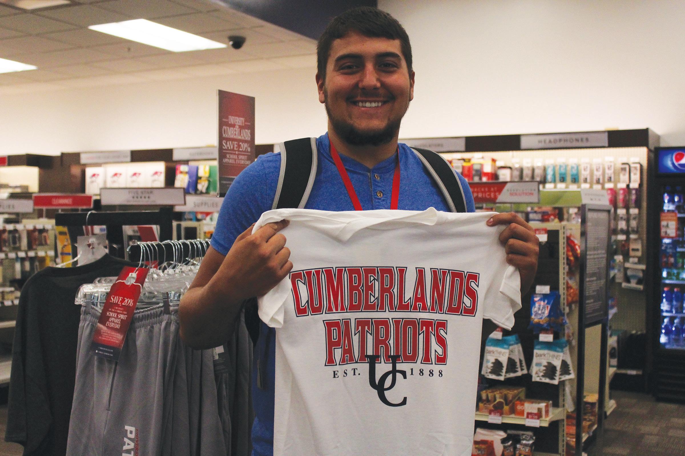 Chase s oler poses with UC merchandise offered in the campus bookstore.