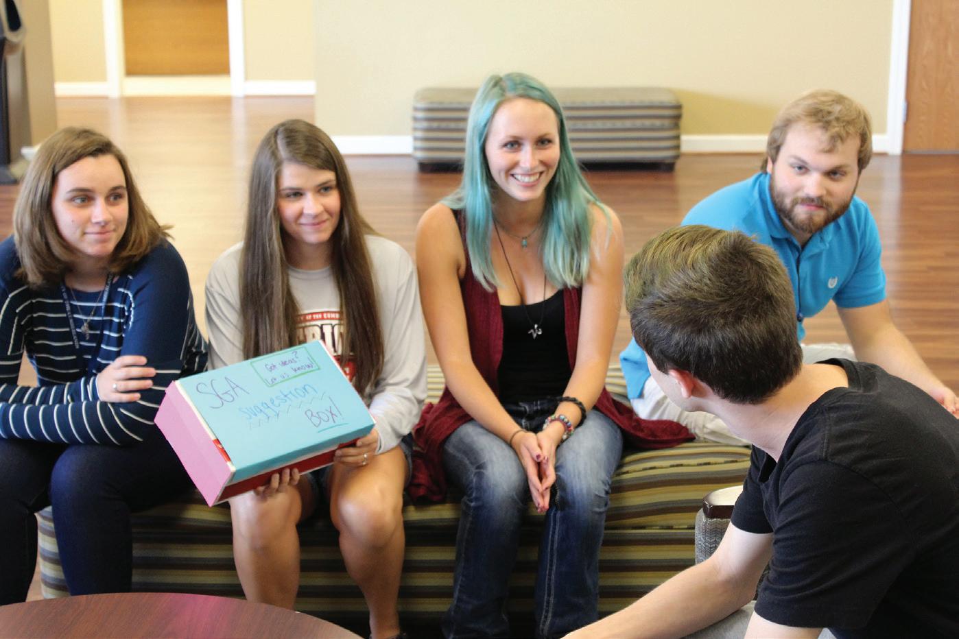 The office is quiet. New flooring covers the ground, with a shine that has yet to be removed by rolling office chairs or scuffs from shoe soles. Outside the office door, a shoebox is sitting on a small end table and is decorated in construction paper reading “Student Suggestions!” The walls are polished with a fresh coat of paint, and a sign on the wall reads in medieval script, Student Government Association. However, the room is not quiet because of a lack of participants; it’s just 10 a.m. on a Thursday morning in the mid-level of the Boswell Campus Center at the University of the Cumberlands.