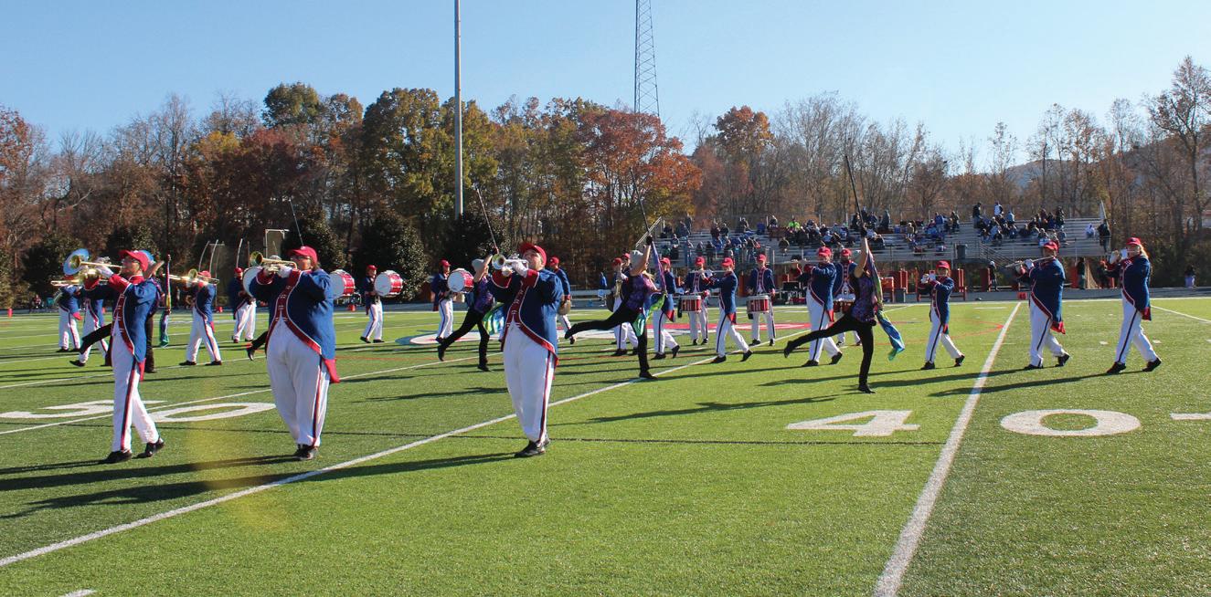 The marching band plays during half-time.