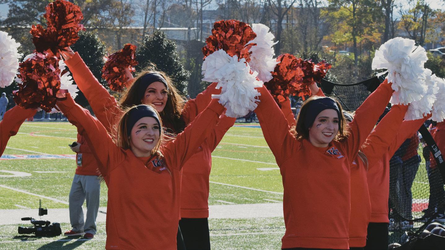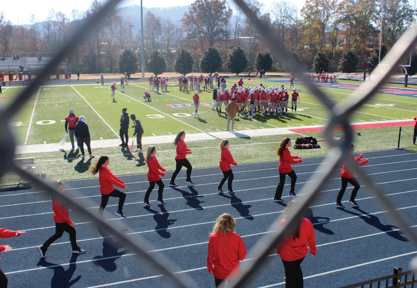 Alyssa Morningstar, Hannah Harrison, and Mollie Riley hit a “High V” while dancing on the sideline of Saturday’s game.
