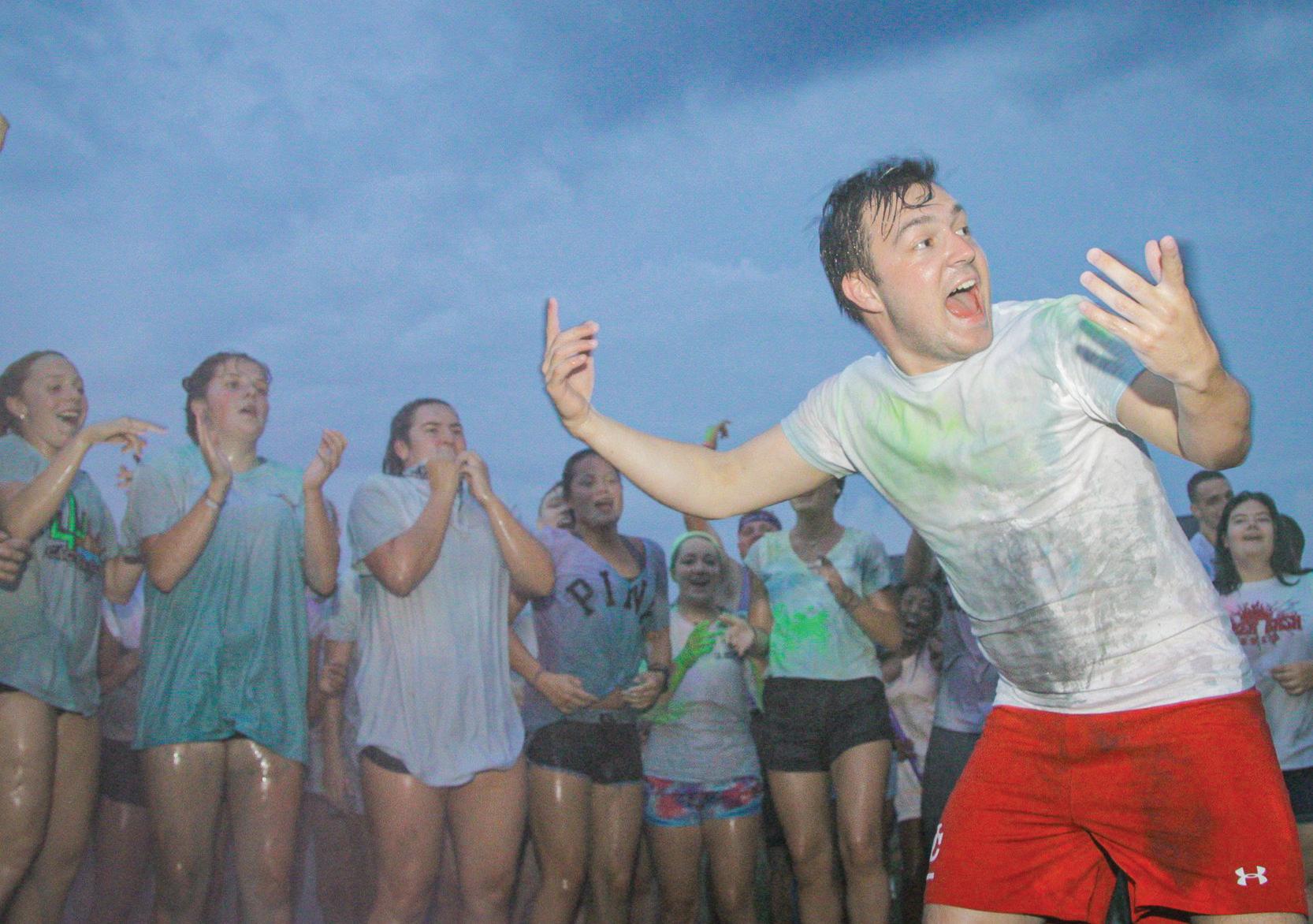 Nicolas Cecioni, a UC sophmore, dances in the middle of a dance pit at paint fest. The annual paint fest helps kick off welcome week at the begining of every school year.