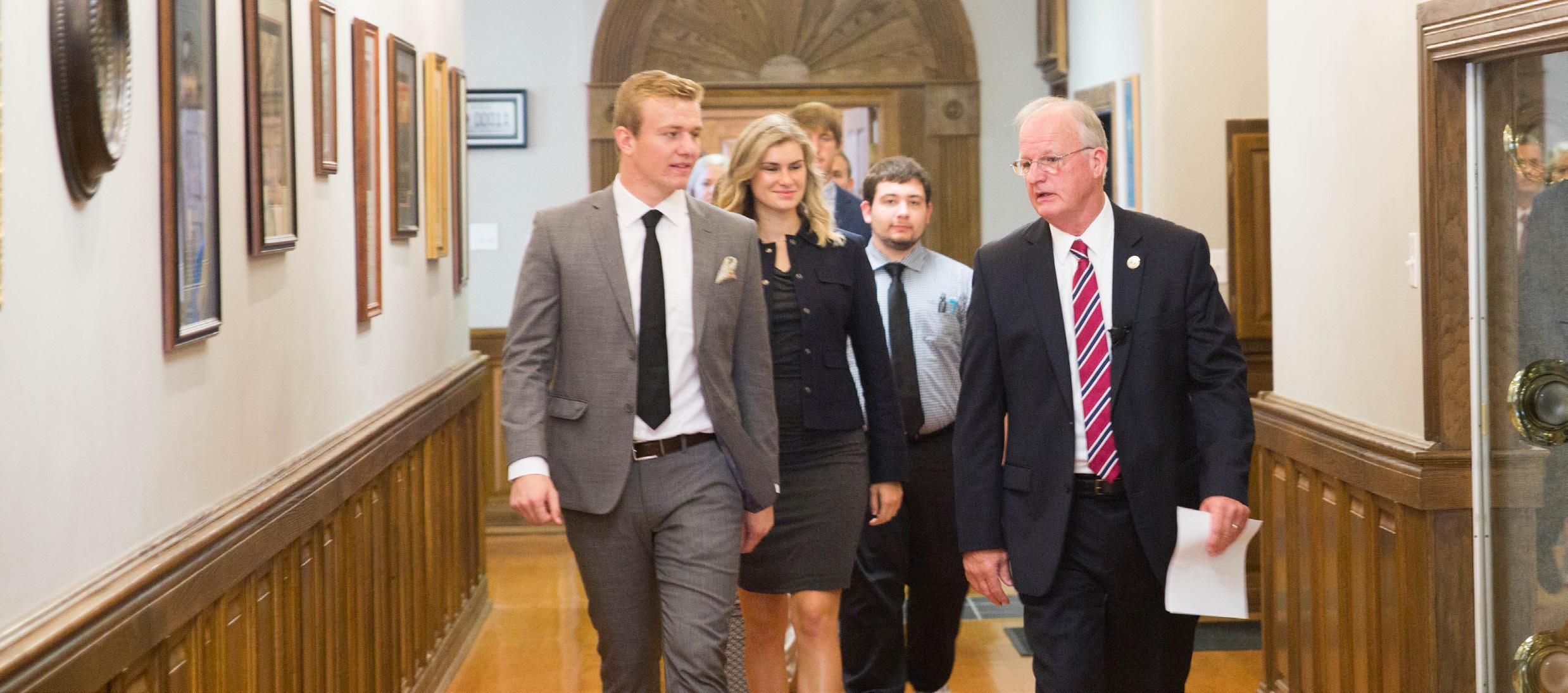 Dr. Cockrum and the SGA cabinet on the way to the assembly.