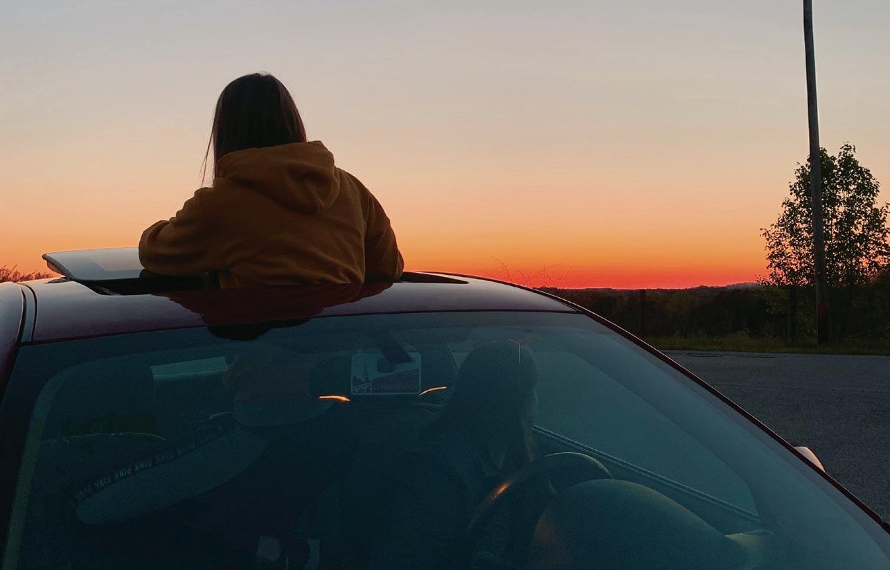 Students Alyssa Hamilton and Savanah Wagers gaze into the sunset.