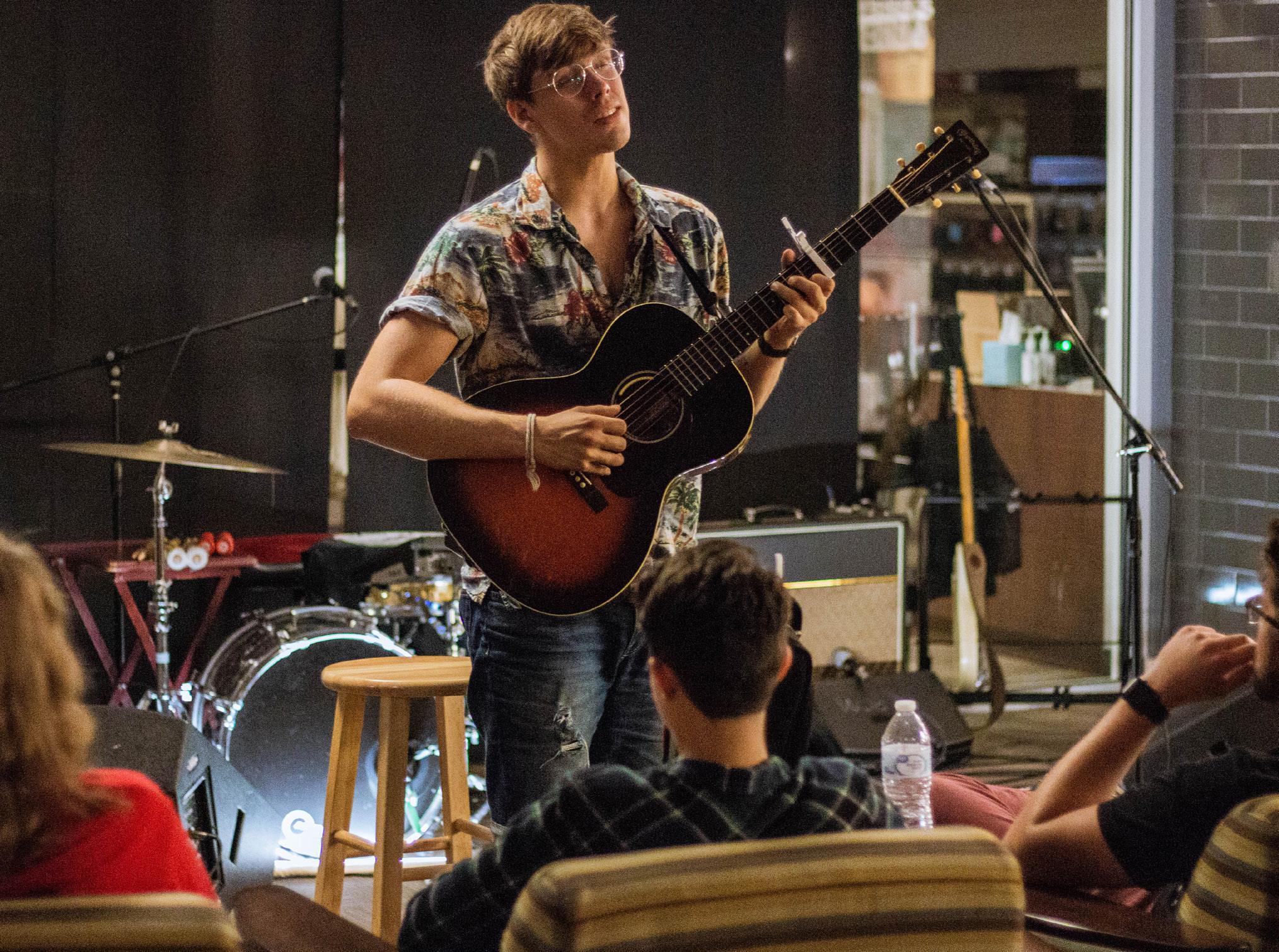 Singer-songwriter Jordy Searcy performs an intimate concert for students in the Mid BCC. Searcy performed covers as well as original songs including “Love & War In Your Twenties” and a duo with student Nikki Marietta. After the show, Searcy stuck around to mingle with students.