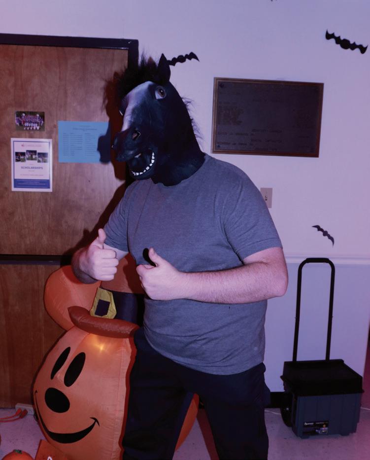 Caleb Chambers poses with a horse mask on.
