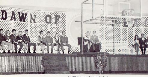 The entirity of the homecoming court of 1969 with the king and queen in the middle.