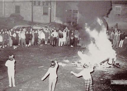 During a pep rally for the 1960 homecoming, the UC student body held a bonfire.