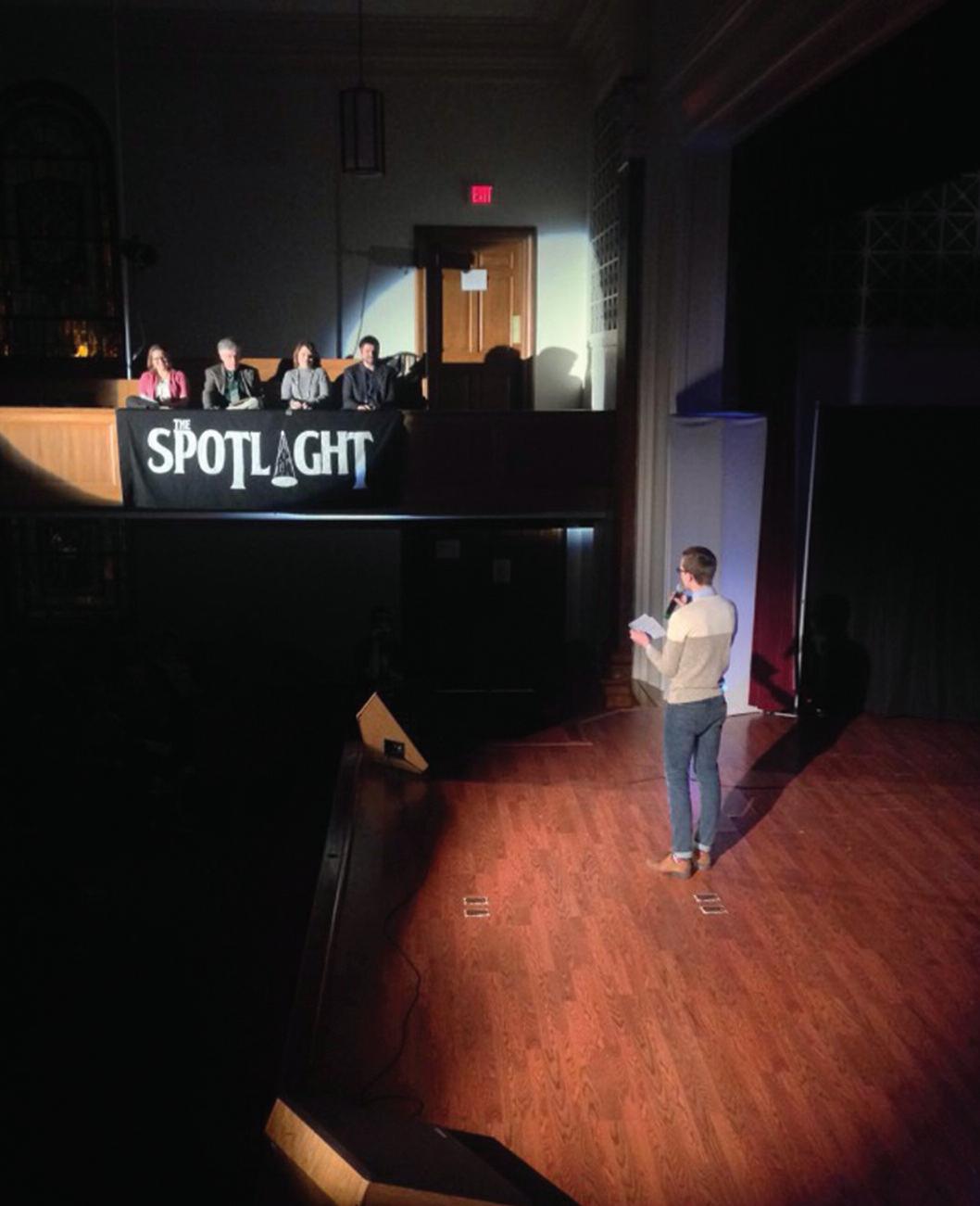 The next night of Spotlight will be on February 9 at 8 p m in the Gatliff Chapel. The theme for that night will be “Soundtrack Night” so the contestants will be singing songs from their favorite movies.
