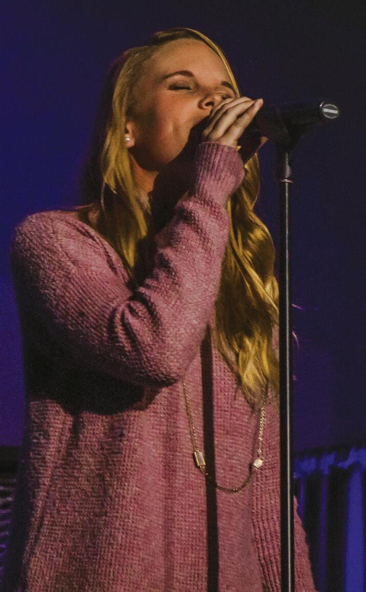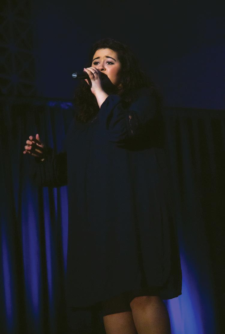 Left: Jaclyn Jewell performs as a part of Spotlight. Right: Elizabeth Stewart sings.