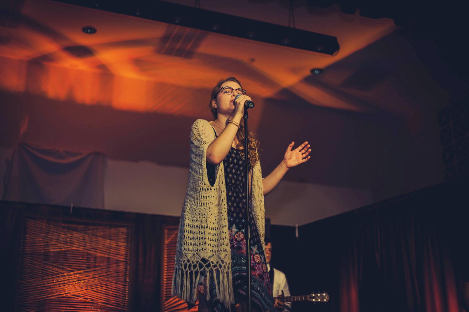 Left: Anne Russell belts “I See Fire “ (Ed Sheeran).