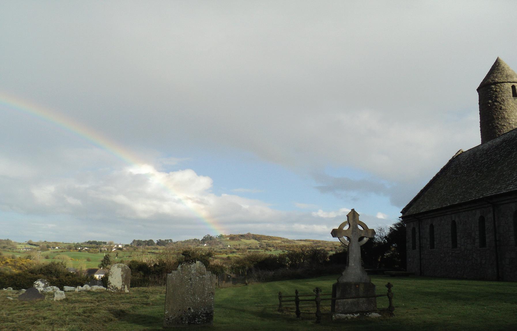 Photo Right: Rainbow over Northern Ireland at St. Patrick’s Memorial Church Saul, which was built on the site of the first Christian Church in Ireland 432 A.D.