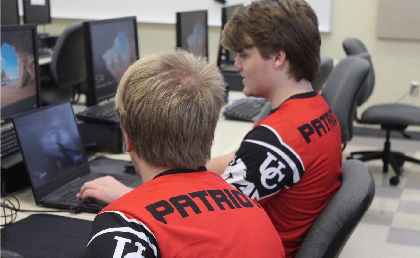 Freshmen Lucas Worley and Jonathan Ball warm up for practice by playing a match of âOverwatch.â