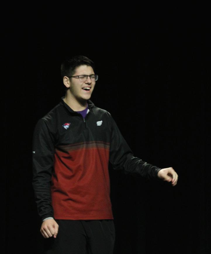 Middle left: Jacob Davis listens to the judgesâ comments and critiques.