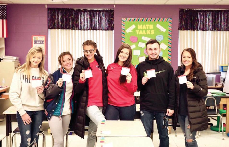 Left: UC students hold up kind notes they left for the students of Whitley Central Intermediate School.