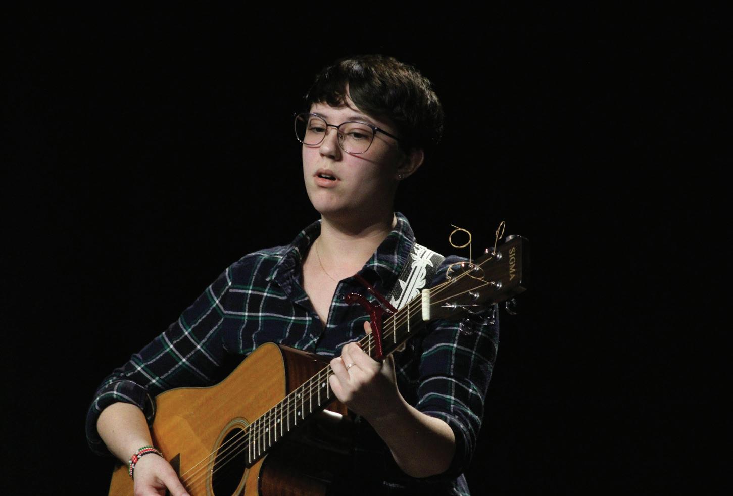 Bottom keft: Nikki Patterson sings as she plays the guitar.
