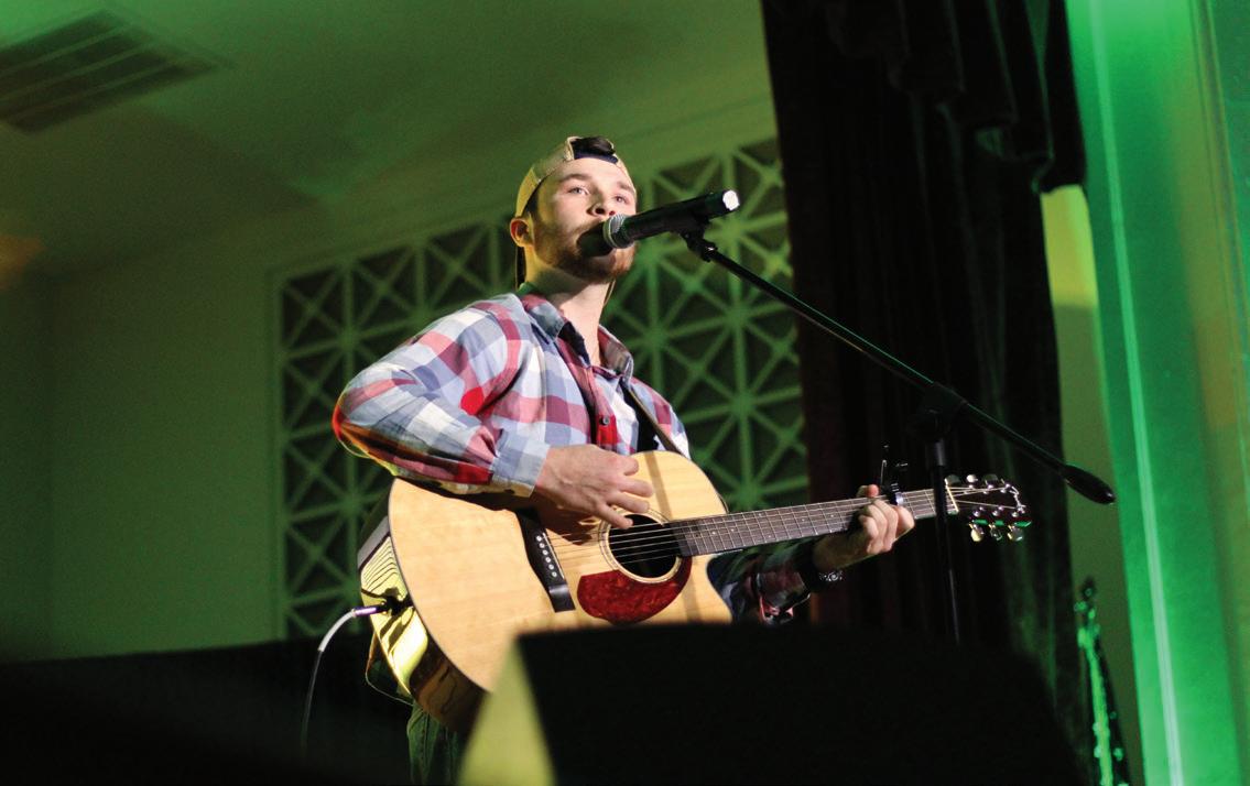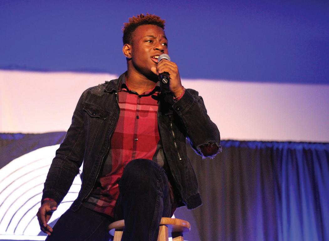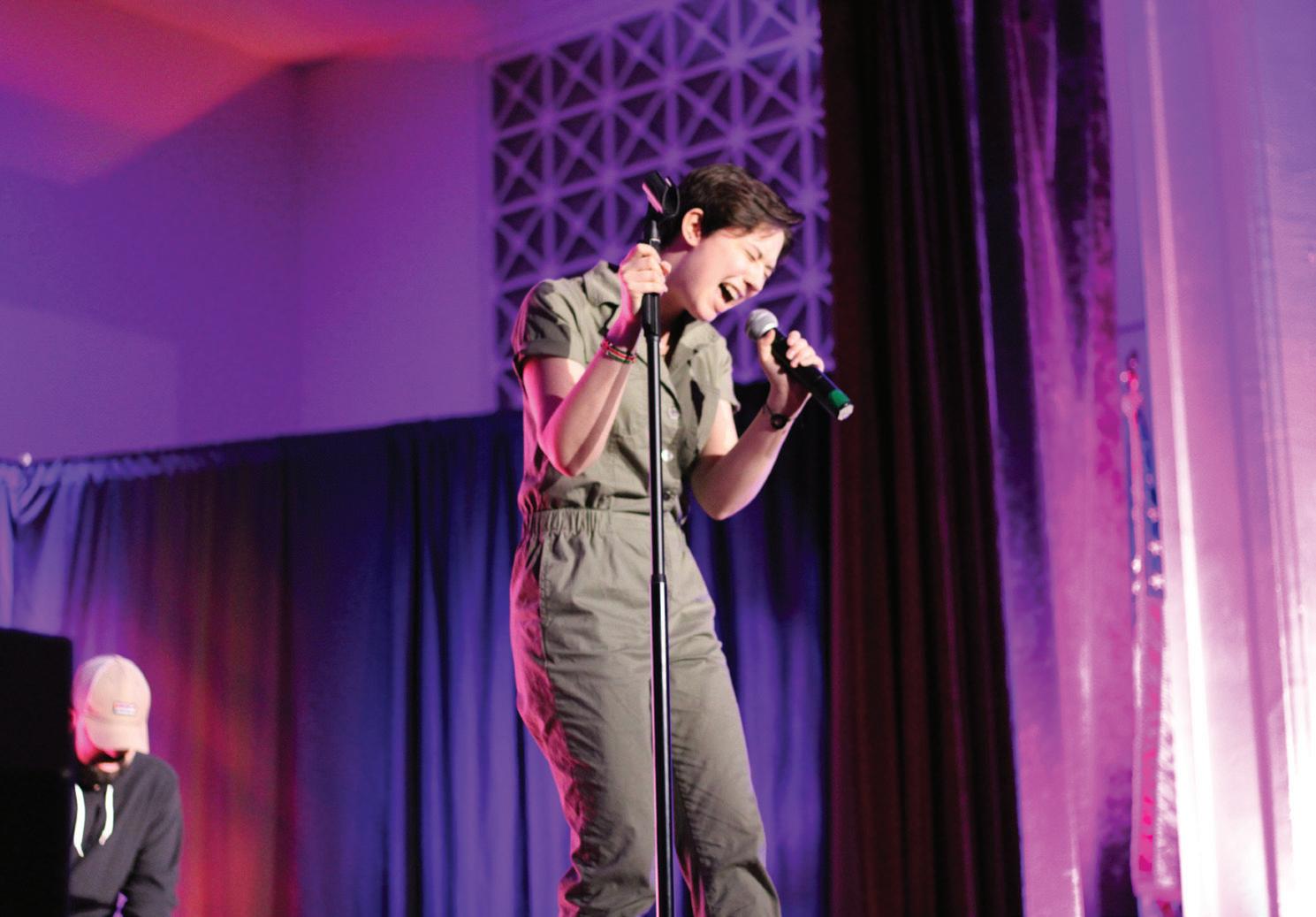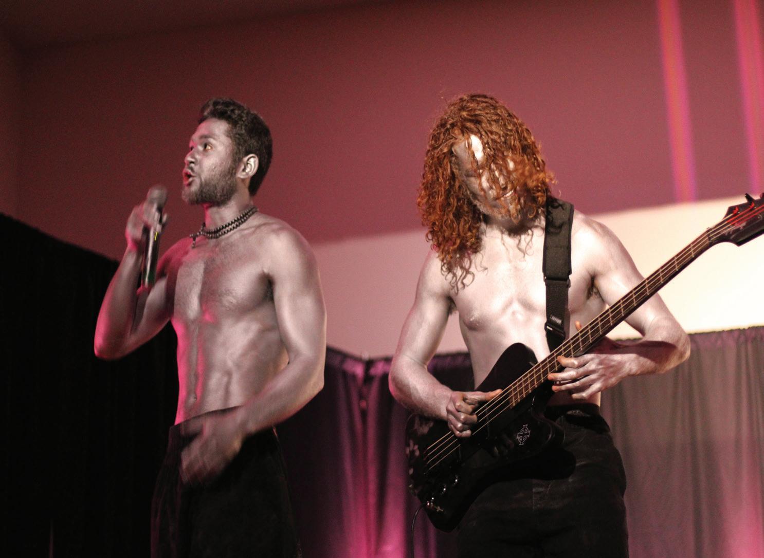 Above: Sebastin Calmes sings âgive it Awayâ by r ed hot Chili accompanied by Matthew Chichura on bass.