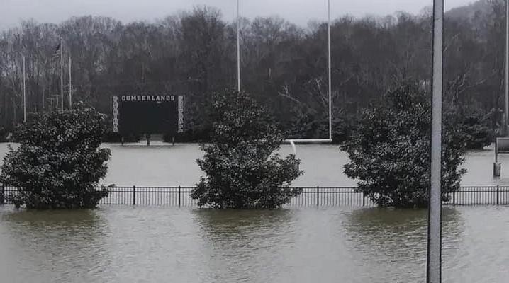 The water levels reached well over the fencing that surrounds the football stadium at a height of 25 to 30 feet. It was even high enough for a local Williamsburg resident to take a joy ride on his own jet ski over the Briar Creek area and onto the football field because of the connecting water to the Cumberland River.