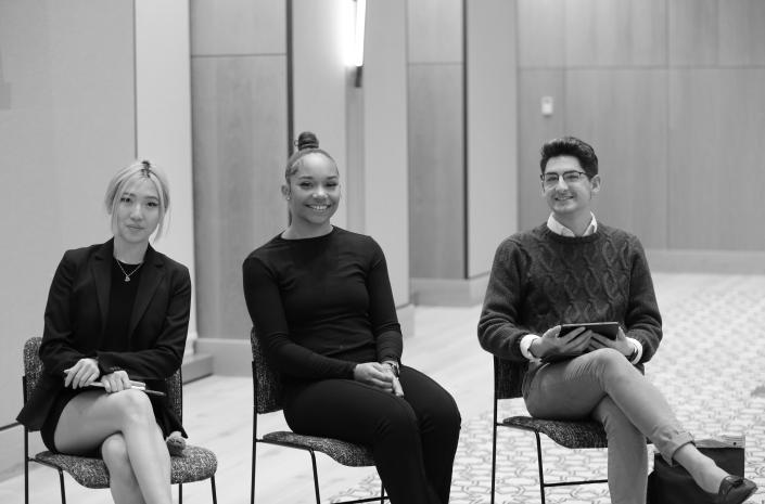 to what it means to be a good ally. Douglas started the conversation by telling a story about how she transferred schools in high school. At her new school, she said she noticed how English as a second language (ESL) students were othered within the school commu nity. She shared how she created programs to help students adapt to the school. In that instance, allyship to her meant helping people who have barriers in their way. Shim said allyship takes on a “we’re all in this together mental ity.” Zeng said that allyship means being aware.