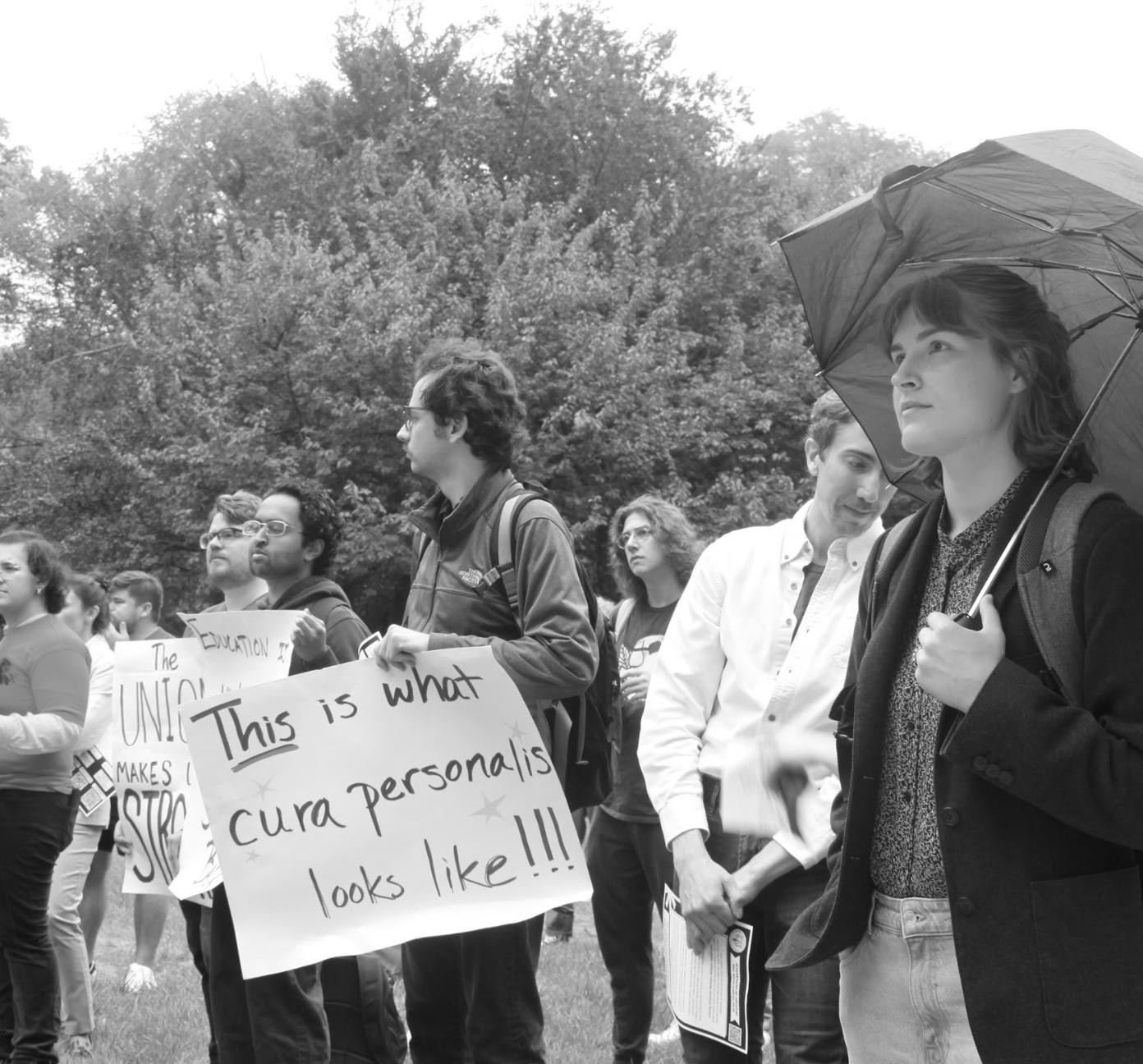 Graduate student workers (GSW) rallied outside of the William D. Walsh Family Library on Sept. 17 to protest grievances against Fordham University’s Graduate School of Arts and Sciences (GSAS). The grievance topics included issues with GSW health insurance, payment cycles and Graduate Student Council (GSC) officers’ compensation.