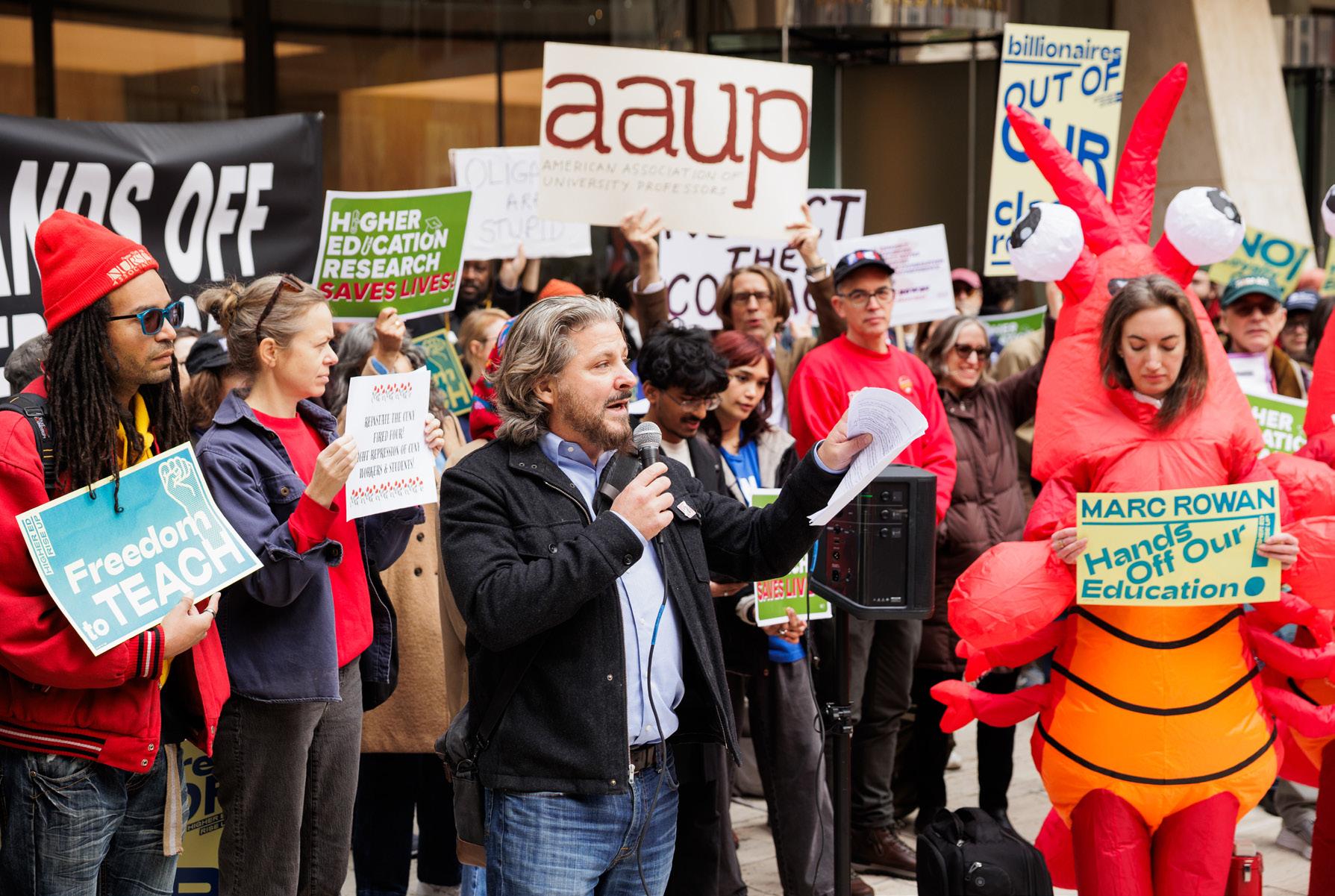 Fordham University faculty and students attended a protest against Marc Rowan and the Trump administration’s “Compact for Excellence in Higher Education” on Nov. 7. The demonstration was organized by the American Federation of Teachers, American Association of University Professors (AAUP),