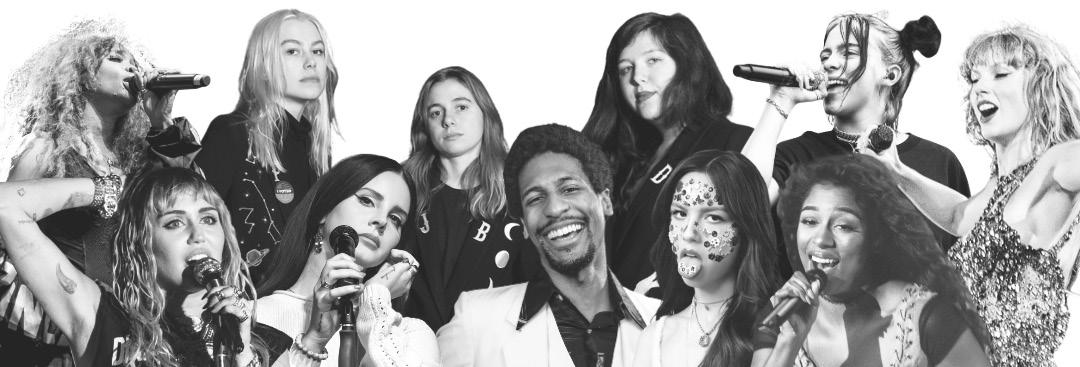 From top left: SZA, boygenius, Billie Eilish and Taylor Swift. From bottom left: Miley Cyrus, Lana Del Rey, Jon Batiste, Olivia Rodrigo and Victoria Monét.