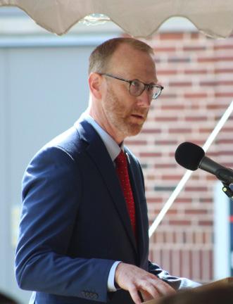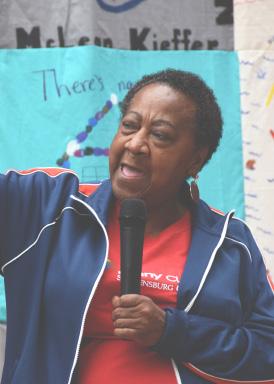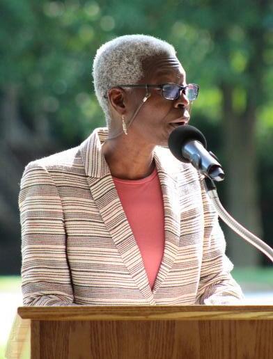 Adam Beam/The Slate Diane Jefferson speaking at the quilt unveiling.