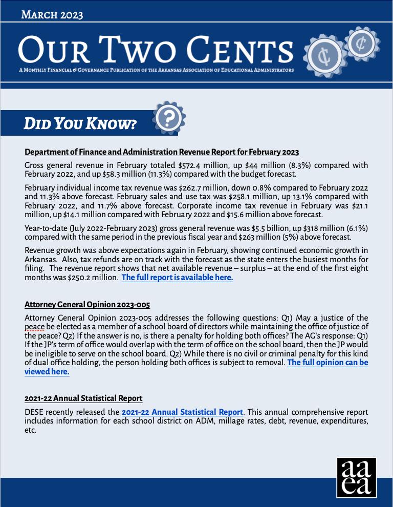 This segment features content from other AAEA publications. Our Two Cents is a monthly publication available to subscribing districts. The following excerpt comes from the March 2023 issue.
