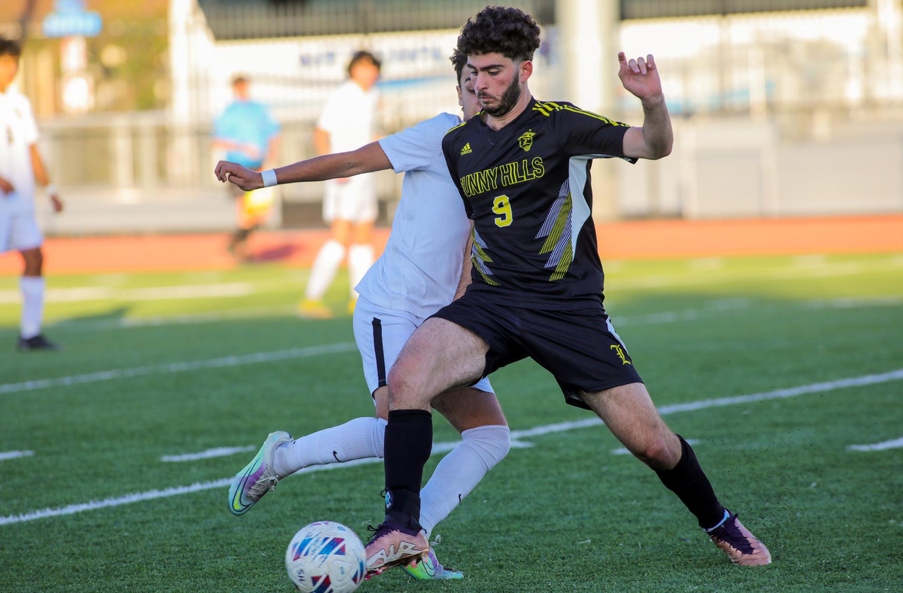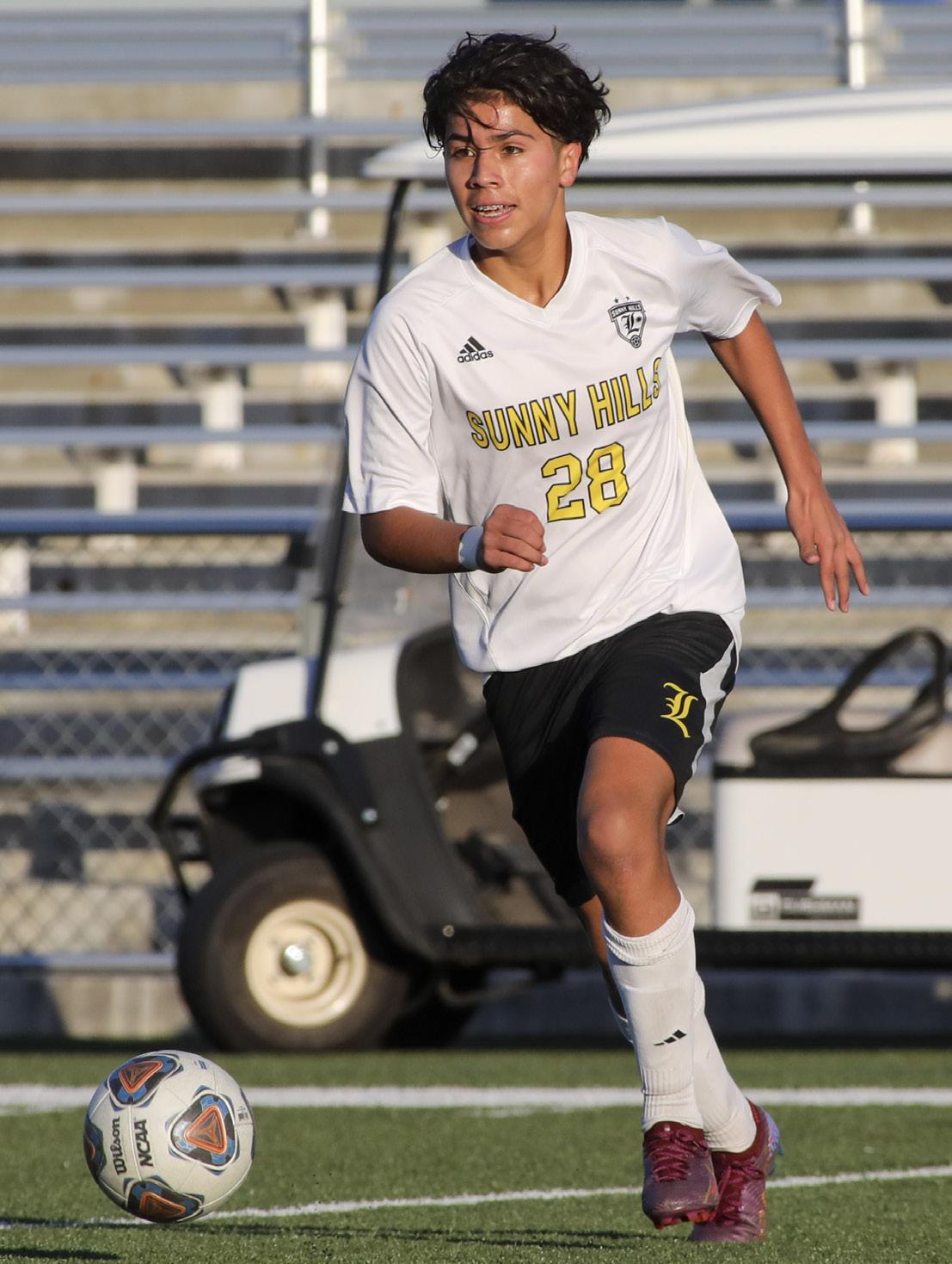 HUSTLE BACK: Center midfielder junior Henry Garcia dribbles the ball down the field on Jan. 4 against the Fullerton Tribe at Fullerton Union High School. The Lancers came out on top with a 1-0 victory. CAN’T STOP, WON’T STOP: Outside midfielder senior David Rezko drives the ball past his opponent on Feb. 1 at home against Sonora. The Lancers beat the Raiders 8-0 to close out the Freeway League season and secure the first place title. “DUBS” ALL DAY: The boys soccer team poses with “W” signs to represent its CIF-SS Division 1 semifinal win against the Citrus Hill Hawks on Feb. 18 at Citrus Hill High School. WIN AT ALL COSTS: Center midfielder sophomore Ethan Castro fights for the ball against the Citrus Hill Hawks on Feb. 18 in the CIF-SS Division 1 semifinals at Citrus Hill High School. The Lancers won 1-0.