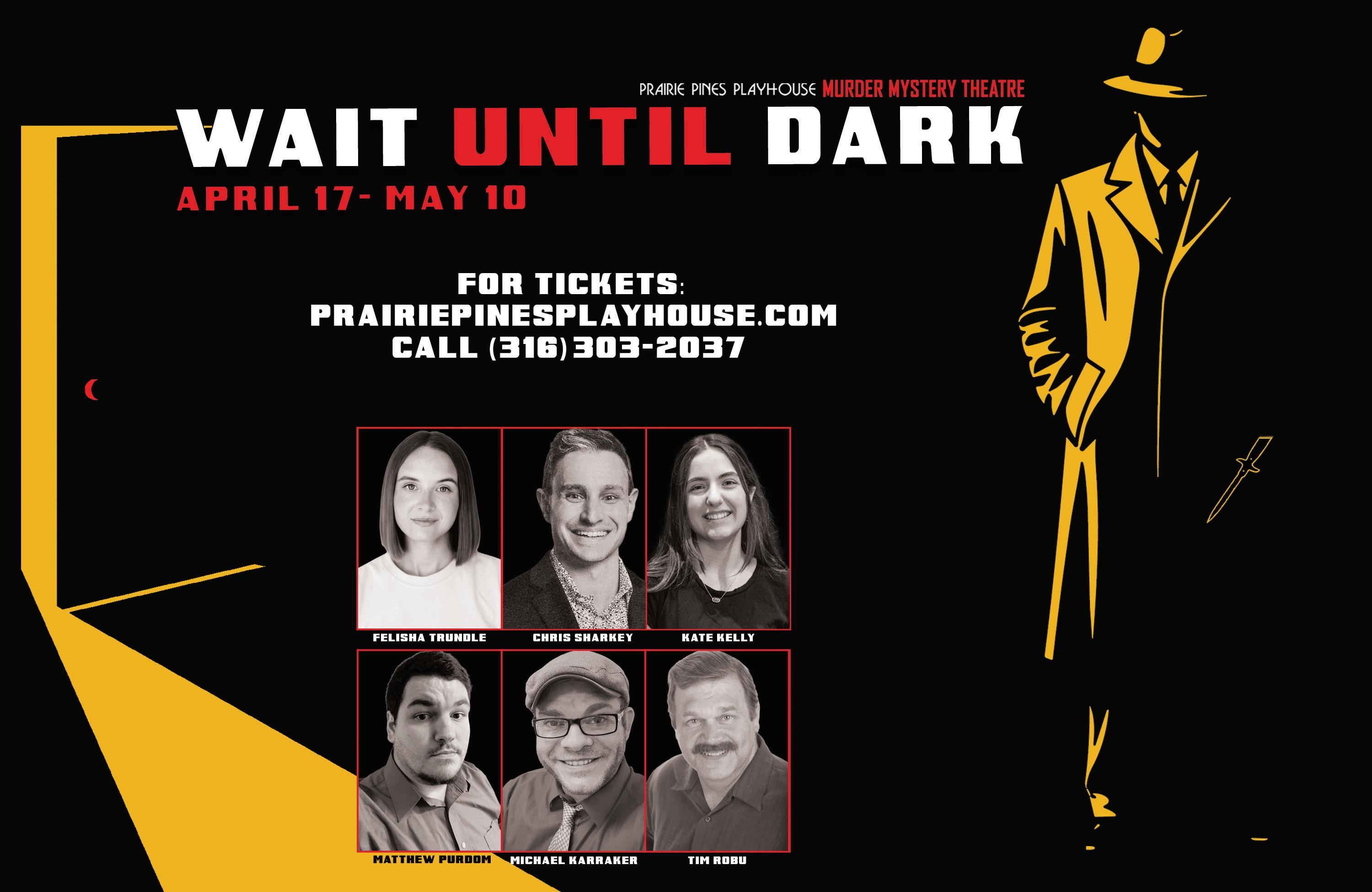 Prairie Pines Playhouse, 4055 N Tyler, Wait Until Dark, a murder mystery dinner theatre production. April 17-May 10. For tickets and more