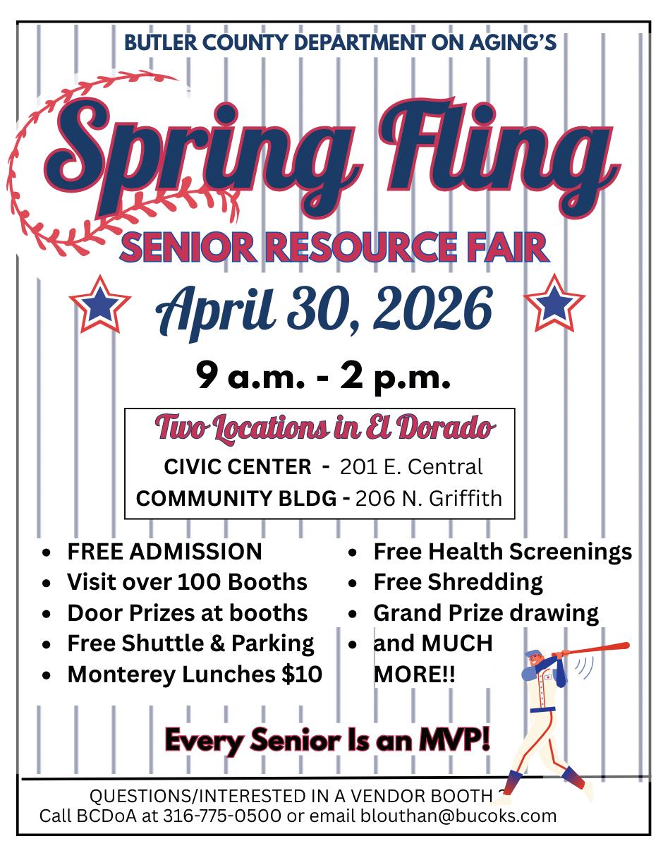 West St., Suite 105, Wichita, KS, 67212, or call us at (316) 942-5385 to donate by phone. The drawing will be held on May 6 and the winner notified shortly thereafter. Proceeds will help us keep bringing The Active Age to subscribers in Butler, Harvey and Sedgwick counties each month.