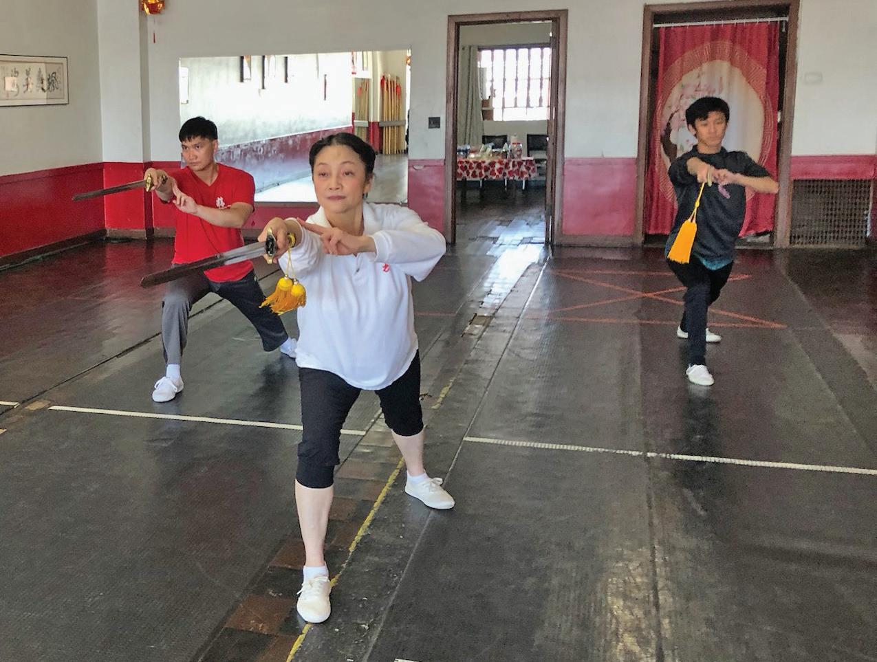 A few minutes later, Wu-Monnat leads three more students through a series of quick thrusts and pivots