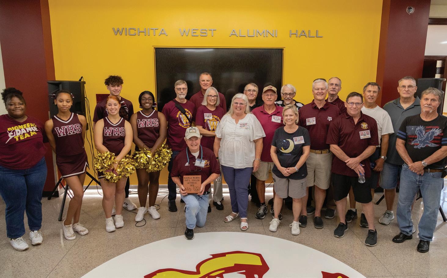 Photos by Selena Favela Bill Reagan, kneeling, and other West High almuni, students and staff gather in the school's new Alumni Hall. Alumni are buying commemorative bricks to help students with academics and more. highest it’s been in decades. They’re dedicated to reviving West’s onceproud athletic tradition as well.