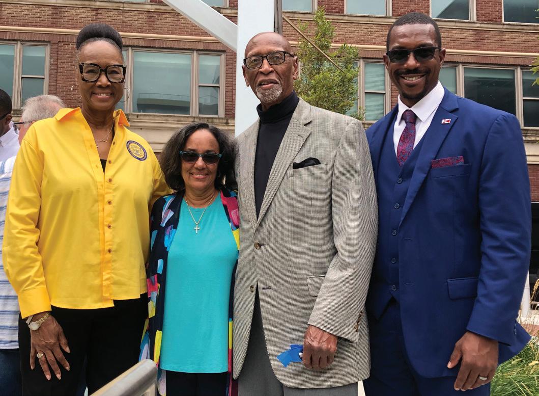 Former City Councilwoman Lavonta Williams, Brenda Davis, Galyn Vesey and City Councilman Brandon Johnson participated in the rededication of Chester I. Lewis Reflection Square Park.