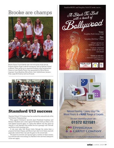 Stamford U13 success Stamford School U13 hockey team has reached the national finals of the ‘In2 Hockey Championship’. Wins against Gresham’s, Ipswich, Joyce Frankland Academy and Bishop’s Stortford and a draw against Taverham Hall put them in the final against Ipswich again. In a game that offered very few clear-cut chances, it was Stamford that created the first openings with Tidswell and Evison both shooting wide. It was soon after that Evison broke through the centre from a pinpoint ball from Harper, and Evison kept calm to slot home. Ipswich gradually worked their way into the game in the second half. The final two minutes saw Ipswich gain a number of short corners, but with the final score ending 1-0, Stamford were crowned champions of the east region.