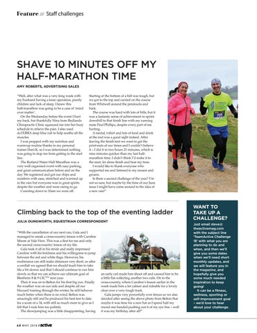 WANT TO TAKE UP A CHALLENGE? Just email steve@ theactivemag.com with the subject line ‘TeamActive Challenge 18’ with what you are planning to do and when, and then we’ll give you some dates when we’ll need short monthly updates, and we will feature you in the magazine, and hopefully give you some much needed inspiration to keep going! It can be a fitness, wellness, sporting or self-improvement goal – we’d love to hear about your challenge.
