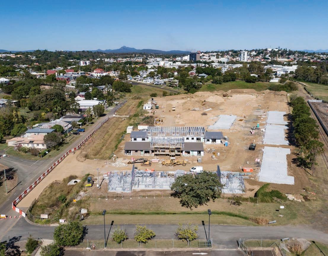 Buildings 1, 2, & 20 have all frames erected with roofing complete to building 1 and just the section of 2 storey town homes to be covered. Electrical wiring has commenced in building 1 and will roll out to others in the next coming weeks.