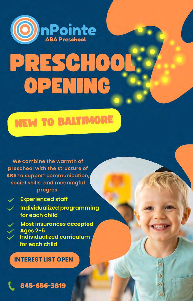 OnPointe ABA is hiring BT’s for after school and school cases. Great pay, supportive environment! Email: hr@onpointeaba.com or call 667.400.4407 HEALTH SERVICES/WELLNESS CARE FOR YOUR ELDERLY LOVED ONE- PT/FT, overnight svc, personal assistance. Bonded & insured. careforu39@yahoo.com or Rhoda: 410.961.6850