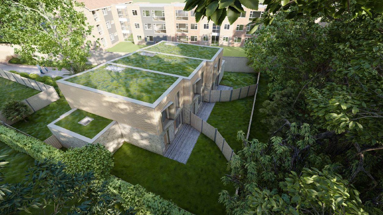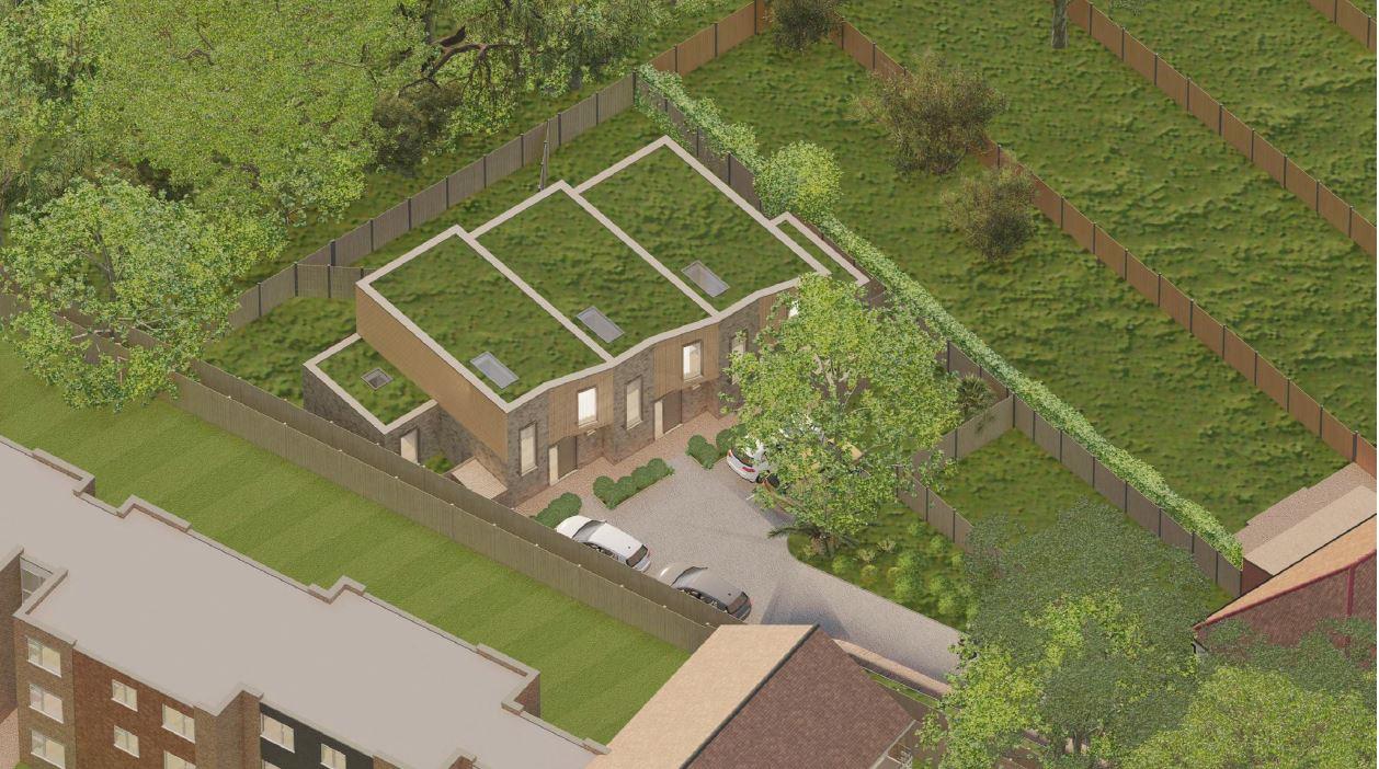 Our subsequent planning submission (Ref. No. 21/3980) has the scheme at ground level with a change in design of the roofs and the front entrances accessible at ground level. We also have included the fire safety report.