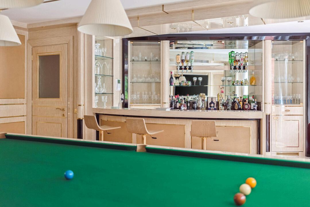 To the front of the house is a formal dining room, a formal lounge with doors to the terrace, an office and a separate room currently used as gym. The house was created to provide a home that not only flowed well but allowed numerous entertainment spaces, none more so than the bar and snooker room. A full bar with multiple seating areas, crocodile skin wall panelling, fridges and speaker system creates the perfect entertainment space which also leads out to the BBQ area.