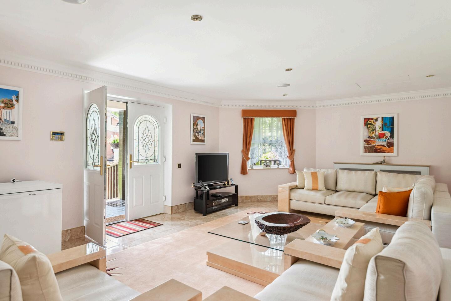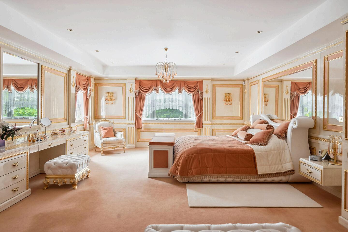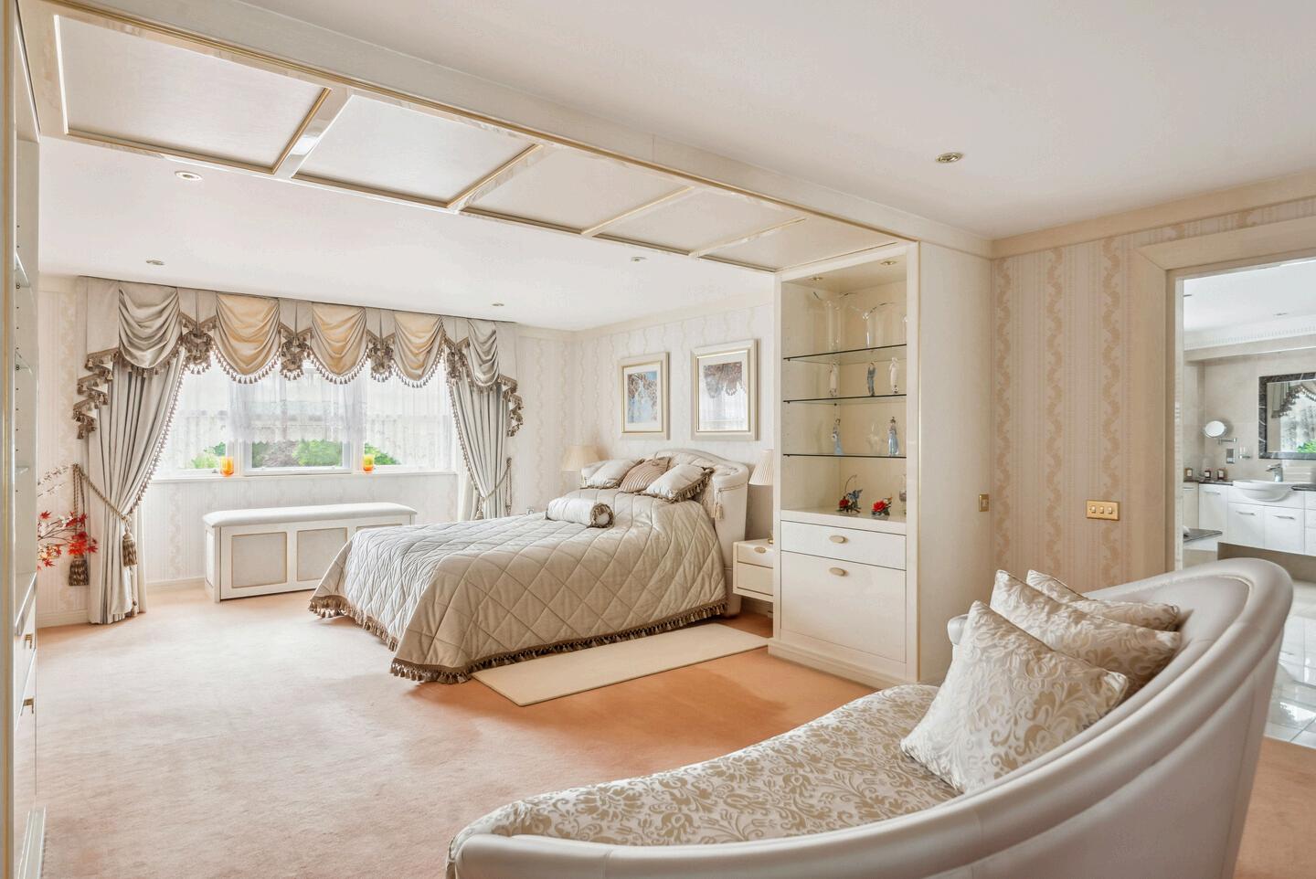 Meticulously designed by the current owners this expansive home totals 8,300 sq ft of exquisite living. Hidden behind the electric gates the driveway accommodates up to 5-6 cars and provides access to the large double garage. At the heart of the house sits a bifurcated staircase created from Carrara marble imported from Tuscany which leads to a grand landing that accesses the numerous bedrooms and bathrooms. Carefully designed and constructed, the current owners also installed a lift that access all three floors, imported from Italy.