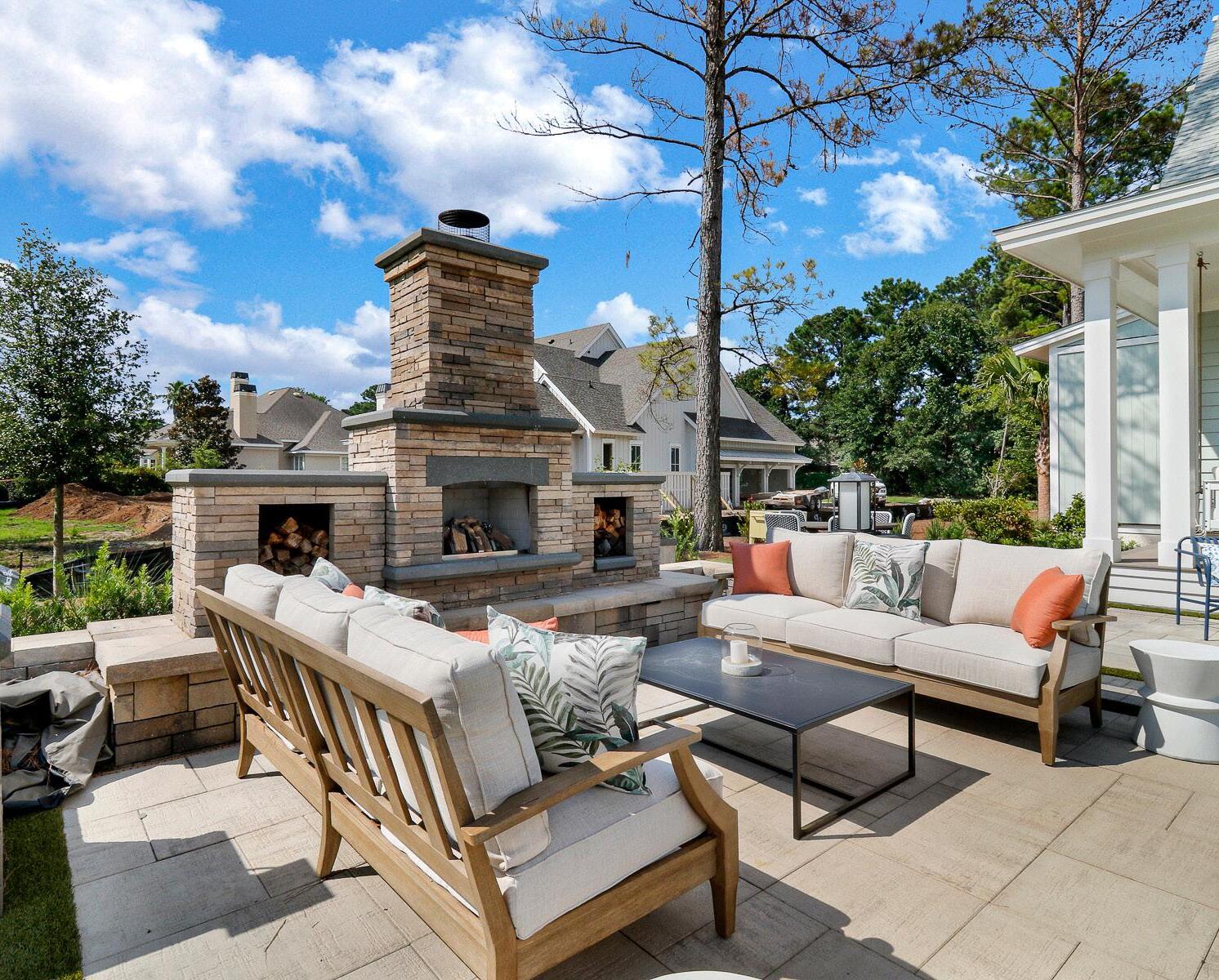Designed for ultimate outdoor living, the backyard is nothing short of breathtaking. Step out to expansive covered porches and a shaded veranda that offer elegant open- air living spaces for lounging or dining al fresco. At its heart, a sparkling pool shimmers invitingly, surrounded by ample seating and lush landscaping for a private, resort-like ambiance. One end of the pool area is anchored by a grand outdoor fireplace, creating a cozy focal point for cool Lowcountry evenings under the stars.