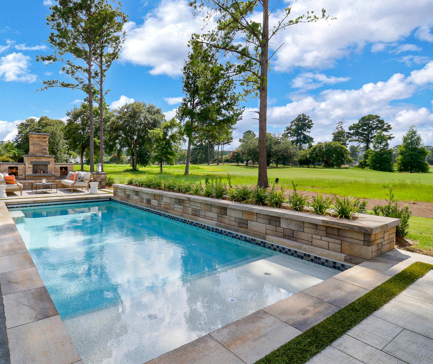 A resort-style pool and multiple entertaining areas make the backyard a true outdoor oasis.
