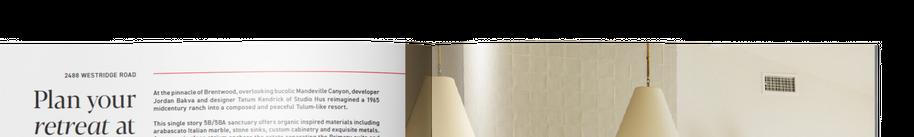 of articles in The Wall Street Journal, The New York Times, Los Angeles Times, Architectural Digest, Robb Report, Mansion Global, San Francisco Chronicle, and more Editorial Coverage that Equates to Hundreds of Millions in Advertising Dollars