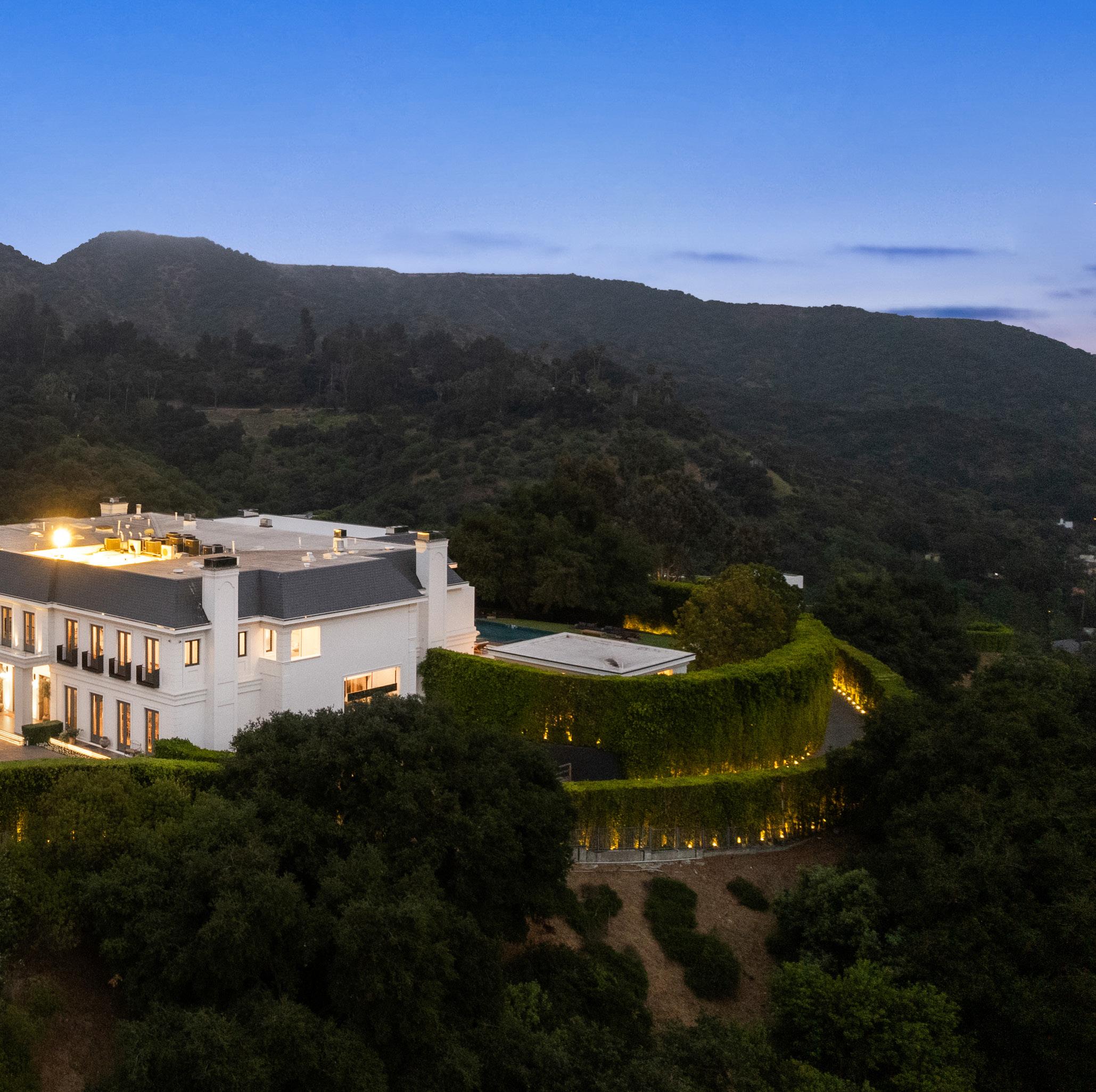 A separate 5,000-square-foot guest penthouse, caretaker house, and two-bedroom guardhouse complement the main residence, while a spacious 12-car garage and parking for 80 vehicles accommodate the most discerning collector.