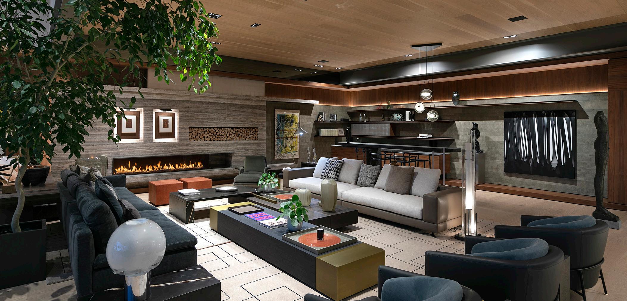Texturized walnut walls with German micro-perforated technology for acoustic purposes