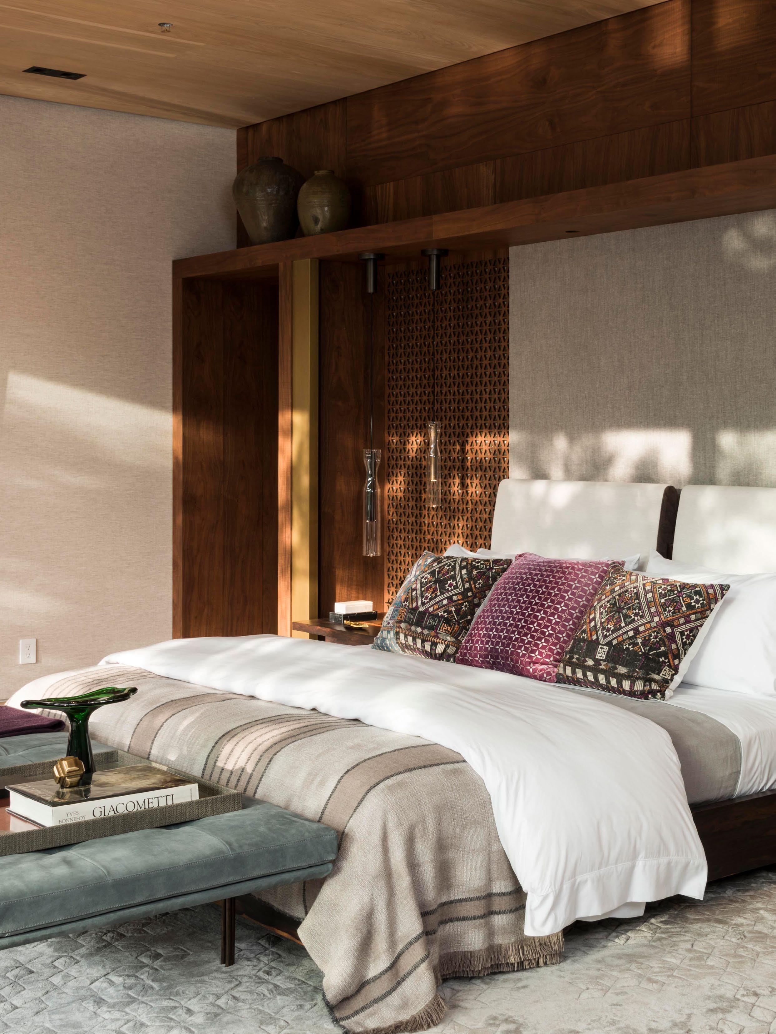 Perfectly conceived for the art lover, towering gallery walls, recessed, backlit art niches and custom bookcases abound.