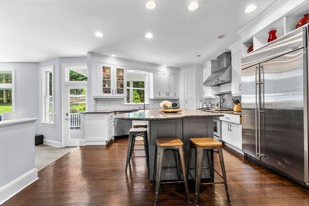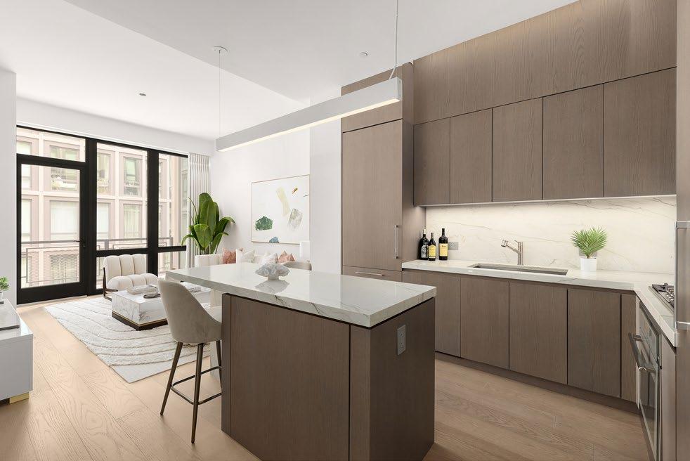 At the heart of the home, the chef’s kitchen is as functional as it is beautiful A 16-foot waterfall island crafted from 3-inch Lincoln Gold countertops takes center stage, illuminated by elegant pendant lighting A hidden scullery enhances the space with added convenience, while a speakeasy-style entry leads to a soundproof music studio or quiet retreat