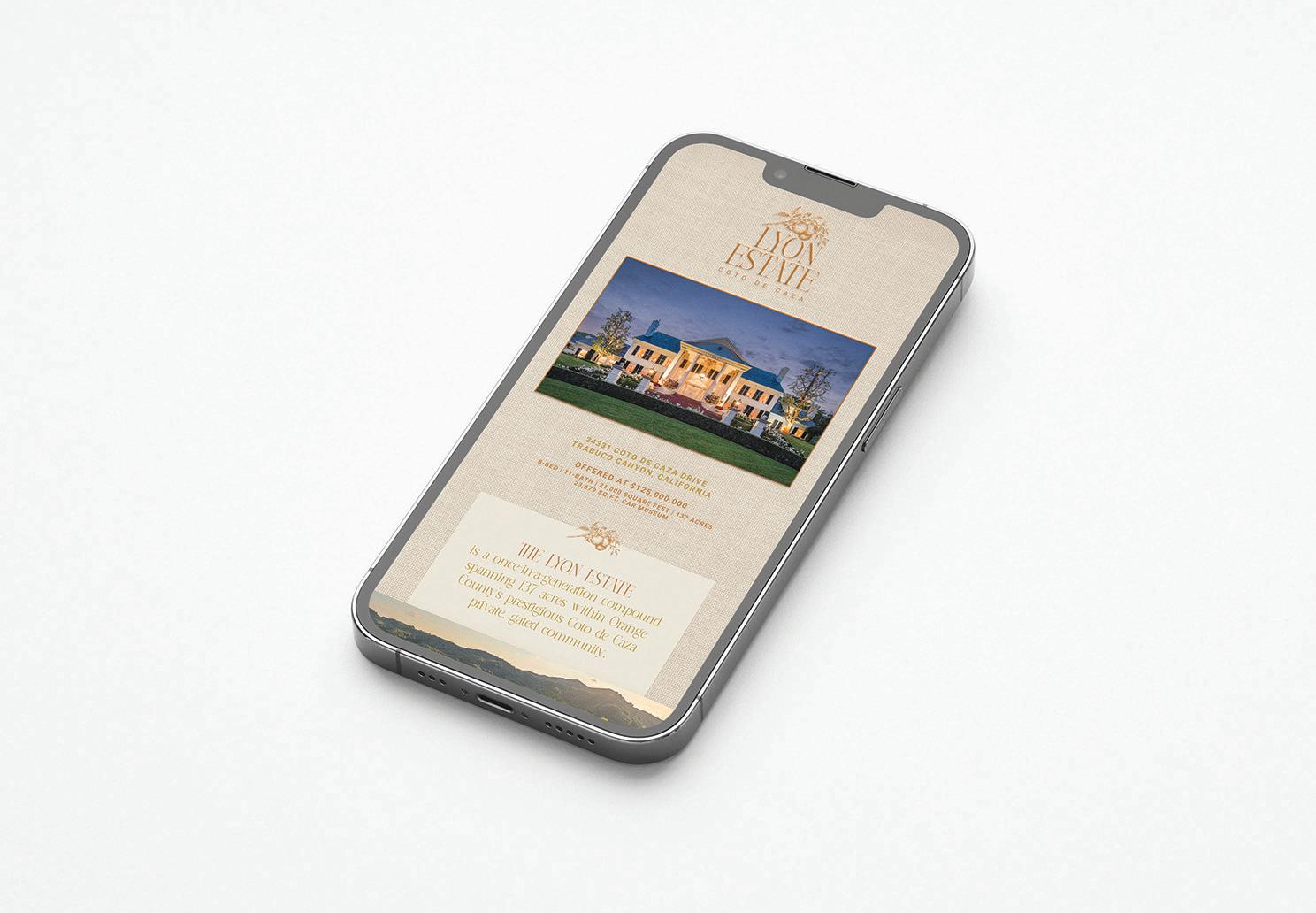 The use of natural linen in the property branding evokes the traditional textures of the home, while the warm ochre tones frame the property within the familiar shades of Southern California’s soil and sun. The refined serif typography honors the history and significance of the Lyon family and the estate’s Southern California roots.